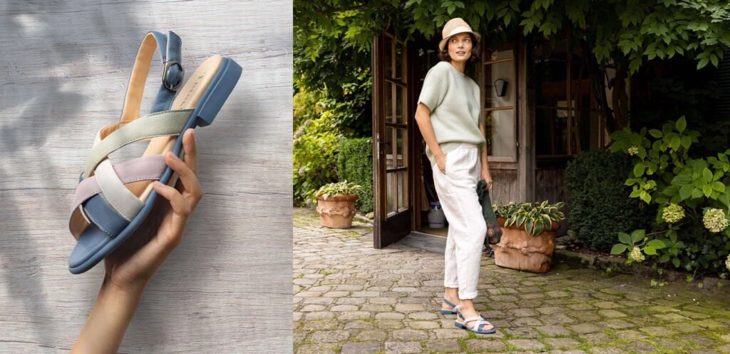 Unsere neue Sandale KAMAA ist ein eleganter Begleiter durch den Sommer. Der flache, leicht angedeutete Absatz sorgt für einen besonders komfortablen Auftritt.