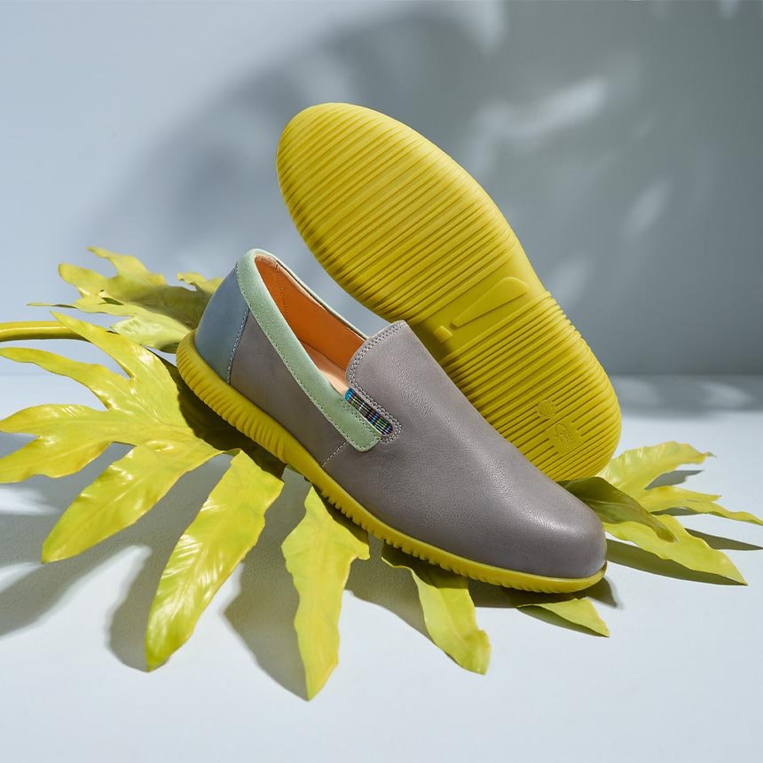 Der sportliche Think! Slipper ist aus ausgesprochen weichem Leder gefertigt, das sich am Fuß herrlich anfühlt – sogar, wenn man barfuß in den Schuh schlüpft.